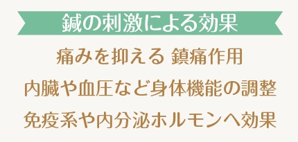 また、鍼は鎮痛作用だけではなく、自律神経が支配する内臓の働きや血圧などに対しても機能を調整する作用があります。さらに免疫系や内分泌ホルモンへの効果もありますが、残念ながらそれらのしくみについては、まだ科学的に明らかではありません。