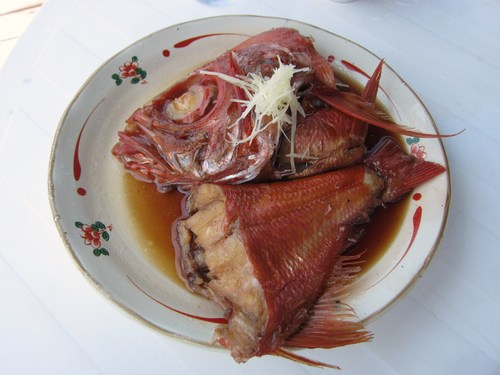 おまけにみんなで金目の煮つけをつついてランチ終了。