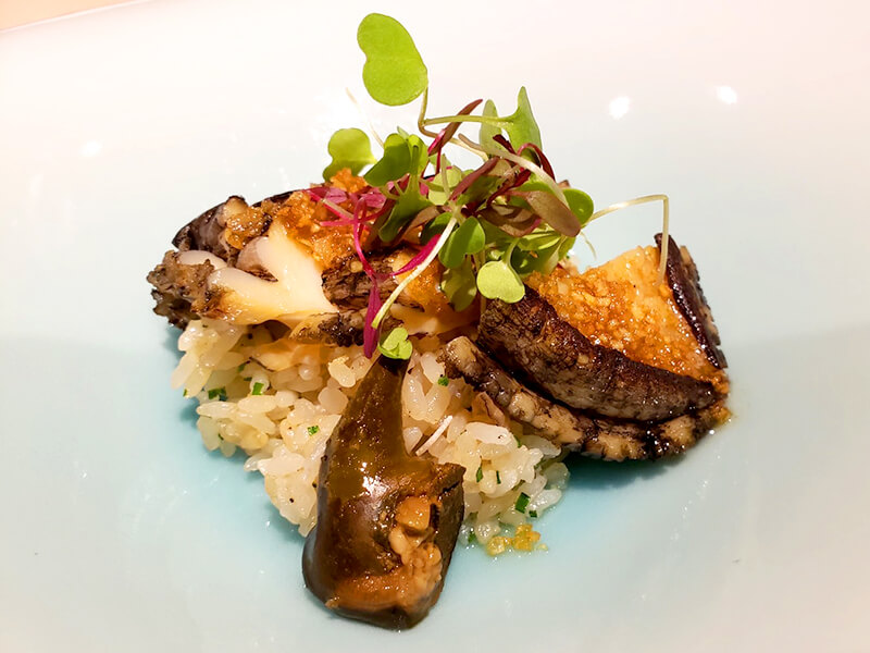 メインは、“活けアワビの柔らかステーキ・ガーリックライス添え”