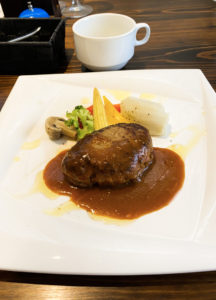 パスタ2種類とデミグラスハンバーグステーキの中から3人ともハンバーグをチョイス!